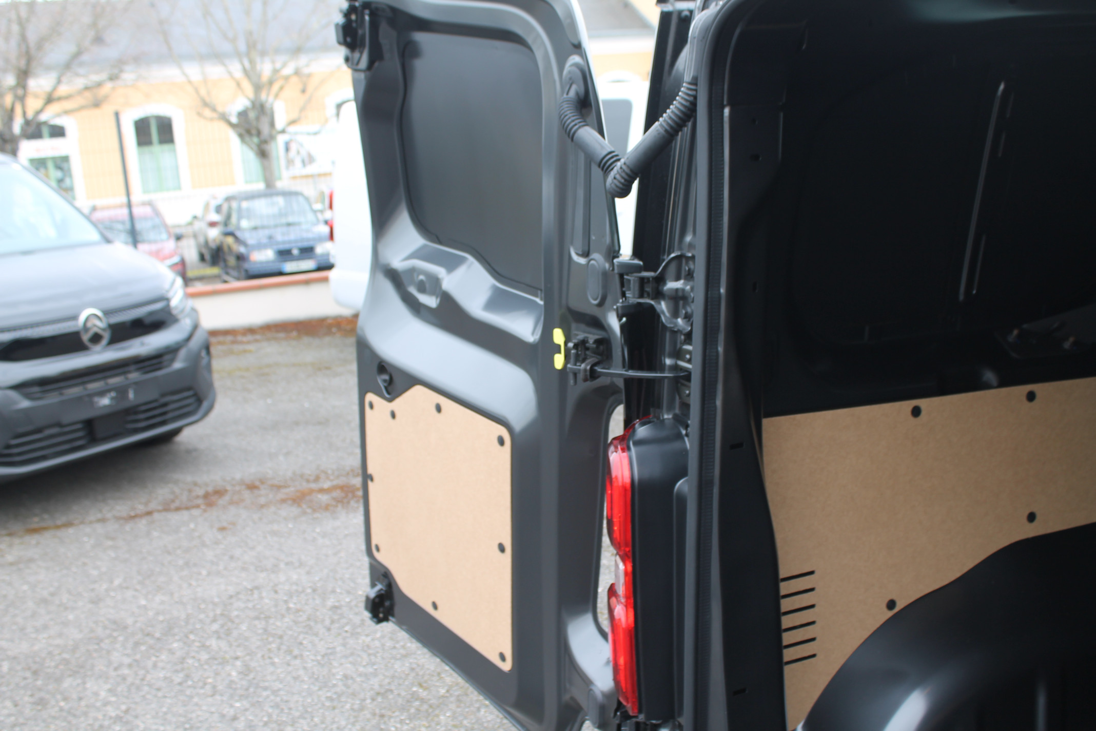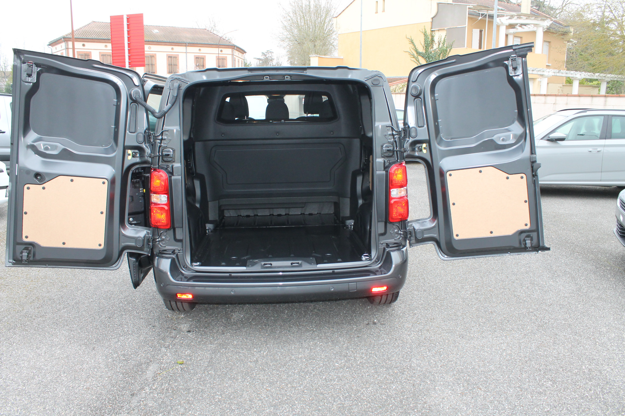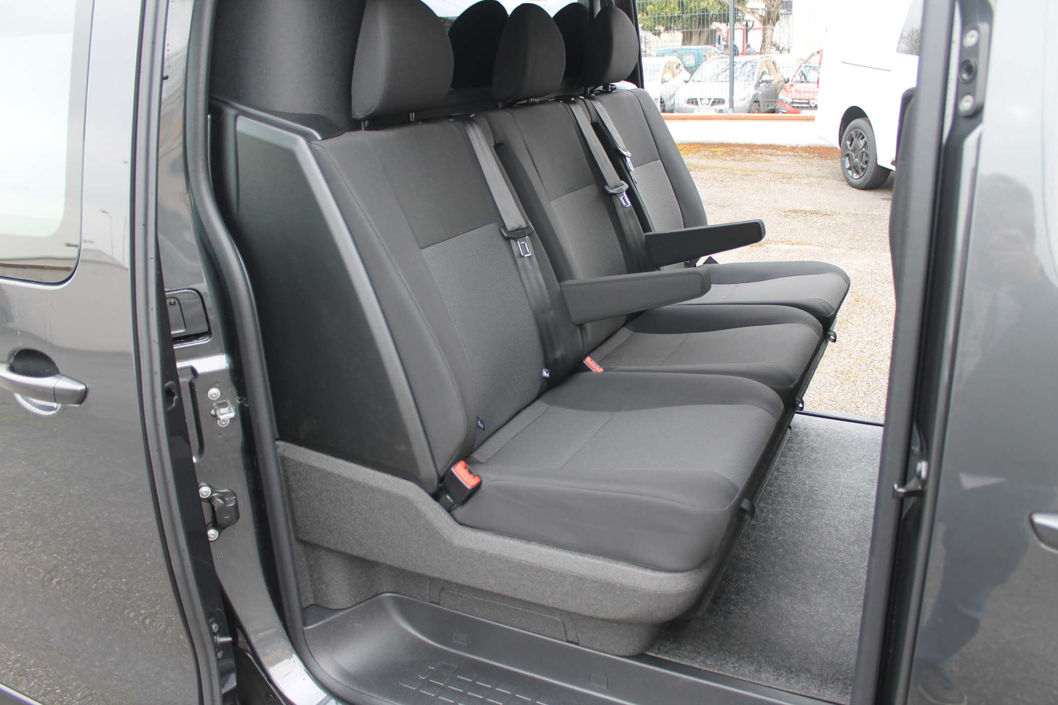 Options : Pack Look extérieur : Boucliers (bouclier AR demi-peint sur Taille XL), Enjoliveur(s) de rail de porte latérale coulissante et Poignées de portes extérieures peints couleur caisse – Baguettes latérales et coques de rétroviseurs extérieurs peintes Noir Perla Nera Jantes tôle noires 17 » avec enjoliveur, Prise 12V dans la zone de chargement, Projecteurs antibrouillard et Rétroviseurs extérieurs rabattables électriquement – Roue de secours homogène (jante tôle noire) – Pack Connectivité + Caméra : Écran tactile 10″ HD couleur, Navigation 3D connectée avec reconnaissance vocale et Apple CarPlay et Android auto sans fil, Combiné numérique 10 » Couleur, Projecteurs antibrouillard, Rétroviseurs extérieurs rabattables électriquement, Prise 12V dans la zone de chargement, Caméra de recul 180° avec affichage sur écran tactile 10 » HD Couleur Planche de bord avec décors Liquid Palladium – Siège passager individuel avec accoudoir (configuration 2 places avant) – Porte latérale coulissante gauche