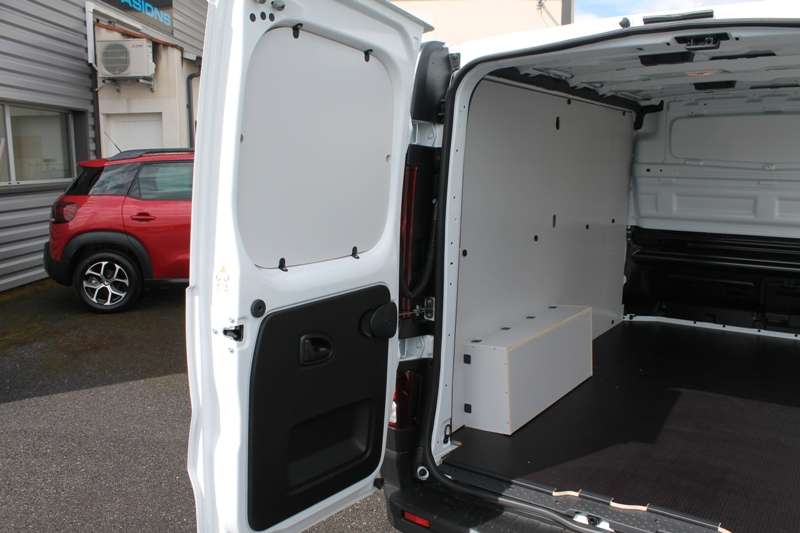 Cloison complète tôlée + trappe – Banquette passager avant 2 places « bureau mobile » – Roue de secours normale – Caméra de recul – Pack visibilité : Projecteurs antibrouillard, projecteurs à allumage automatique et essuie-glaces à détecteur de pluie – Easy link écran 8″ avec navigation – Climatisation automatique – Carte d’accès mains-libres – Siège conducteur réglable en hauteur avec réglage lombaire et accoudoir – Habillage Bois.