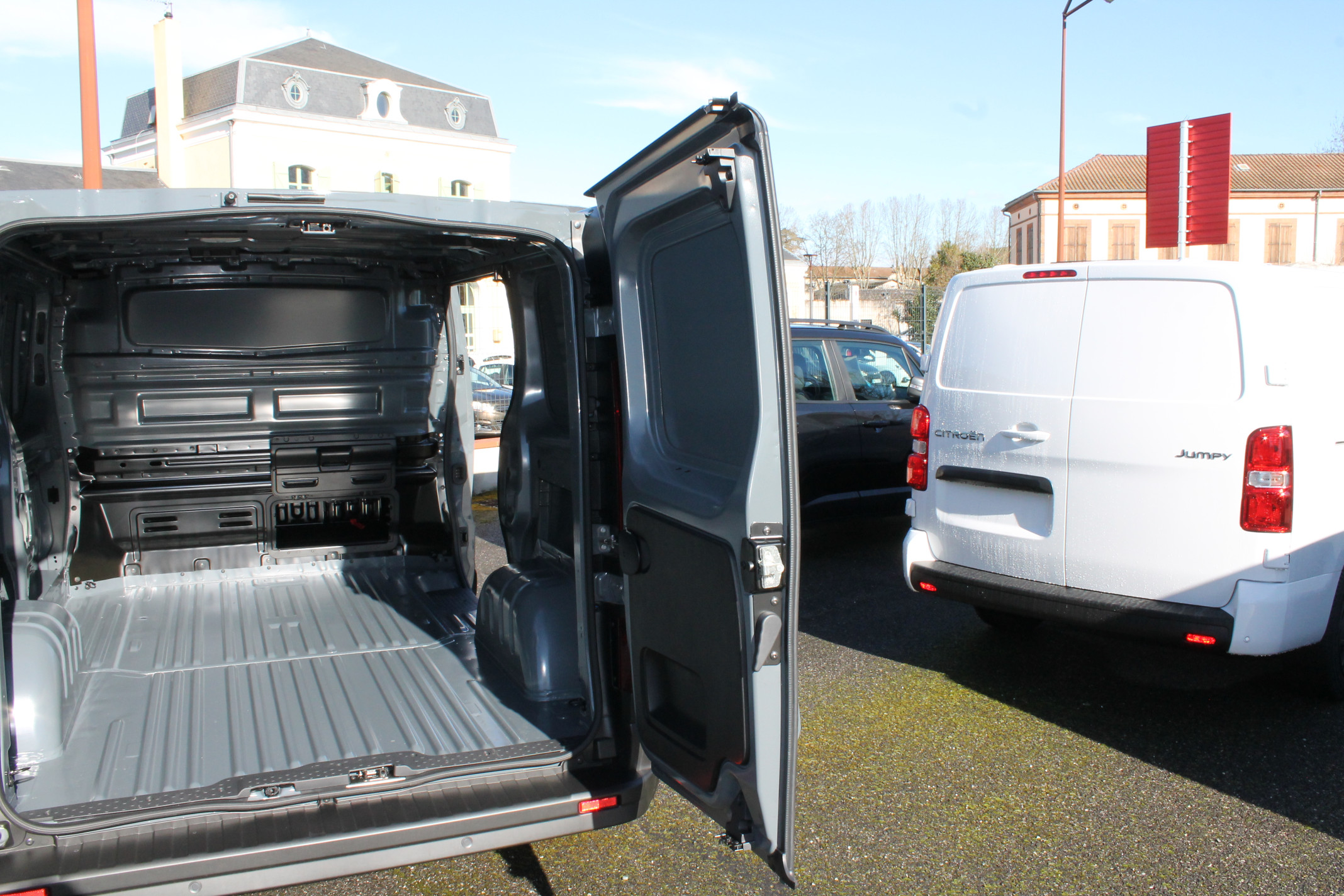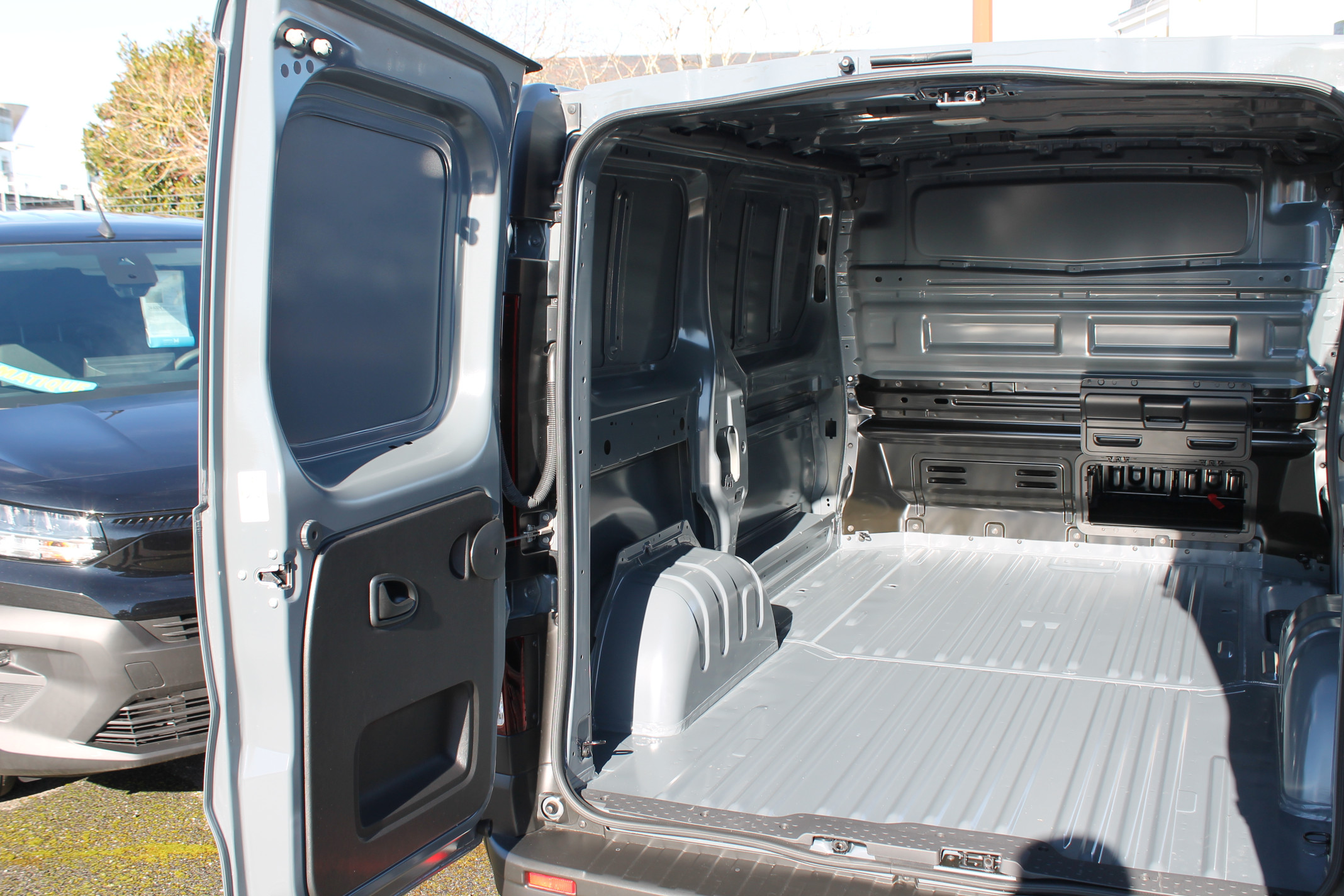 Cloison complète tôlée + trappe – Banquette passager avant 2 places « bureau mobile »